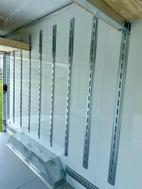 - E-Tracks: Vertical E-tracks can be installed every 2′ and come with four decking beams.
